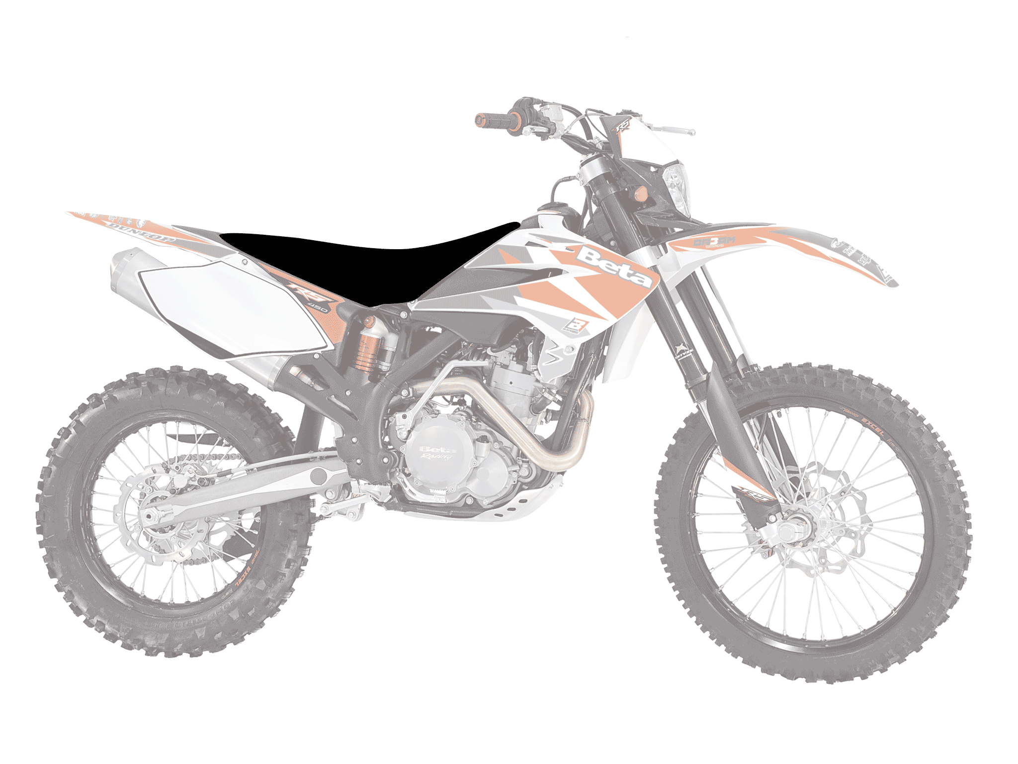 Seat cover to substitute the original one. Produced with the best technologies on the market. It fits perfectly with the shapes of the seat, even with higher foams up to almost 2cm. Created using only one piece of ultra gripping and unicolour material. Tested in the World Championship it displayed the following characteristics: - very wearproof, even when the rider uses state of the art protective kneepads - best grip even with mud and rain - easy to assembly thanks to the shapes studied ad hoc to fit perfectly with the seat.