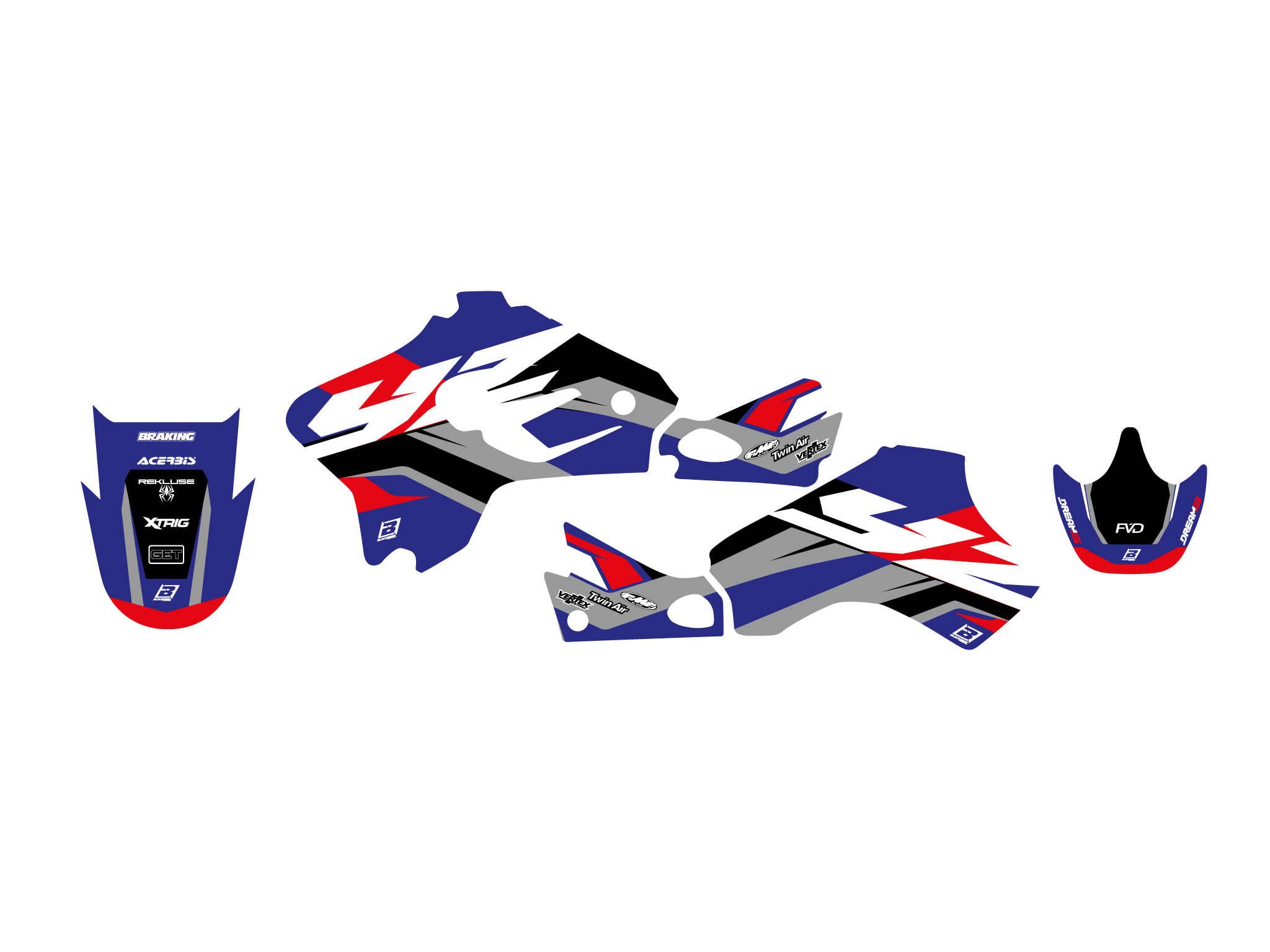 The sticky graphics for motocross, enduro, motard and trial are created using high-performing and high-quality materials. The used crystall is 0,5mm thick and it is combined with a strong sticker, specifically designed for the off-road use. Strong and long lasting adhesive. Silk-screen printing realised with resistant and shiny inks. To obtain the best result, the sticker must always be warmed up with a dryer and exposed to a light pressure. Do not use soaps or solvents
