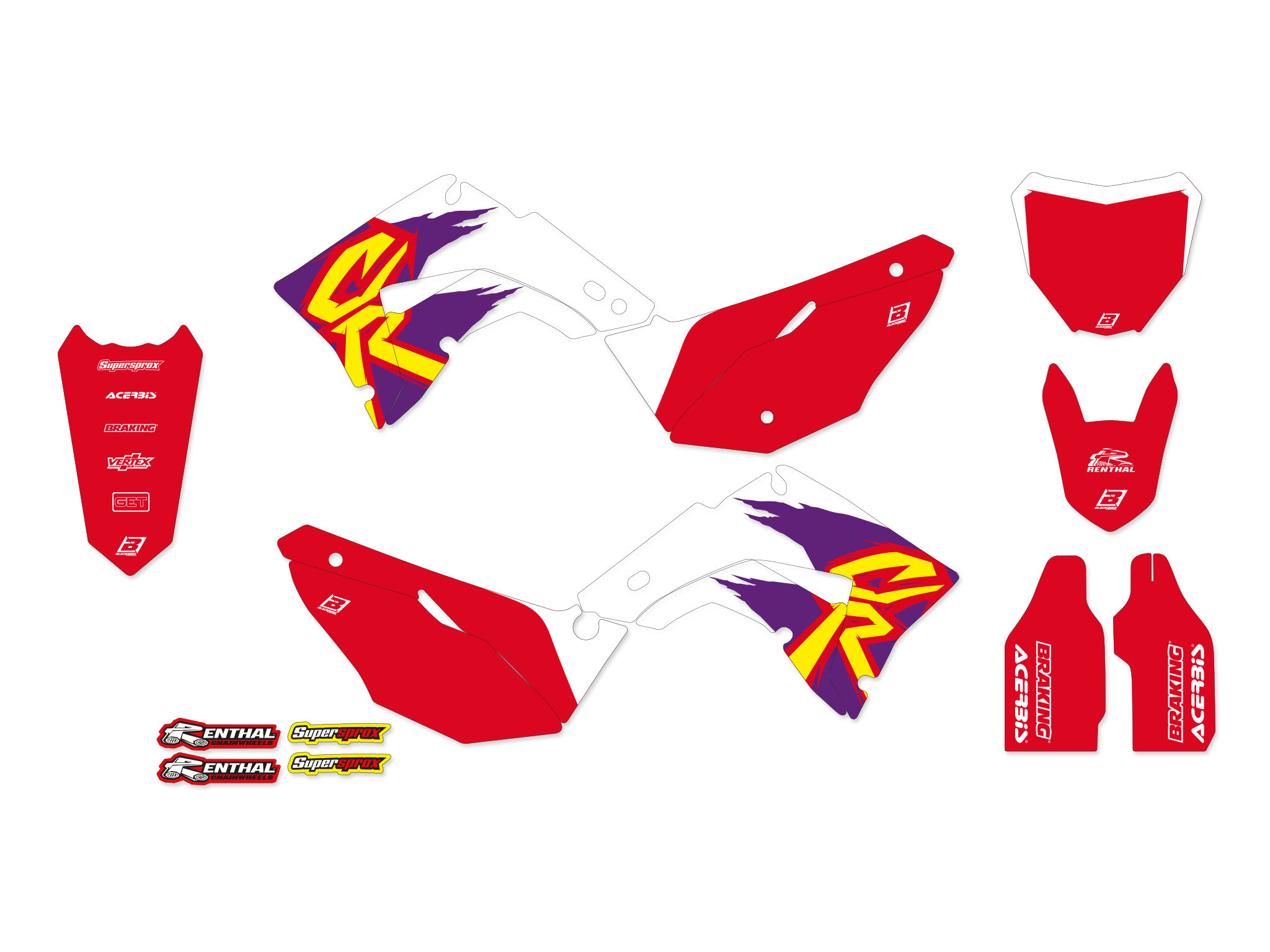 Each kit includes all the main parts: radiator shrouds, fenders, airboxes, number tables, swingarm.