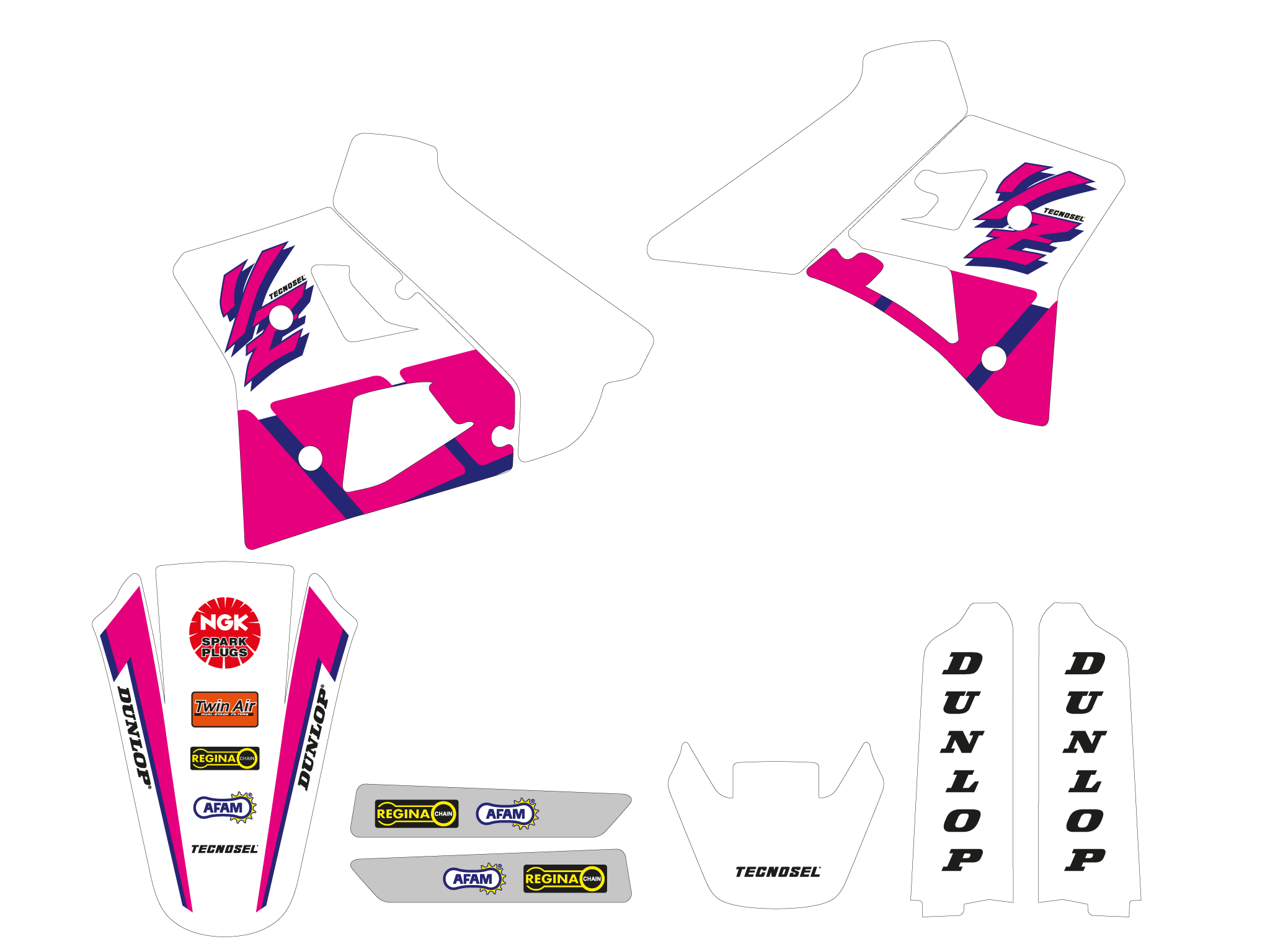 Each kit includes all the main parts: radiator shrouds, fenders, airboxes, number tables, swingarm.