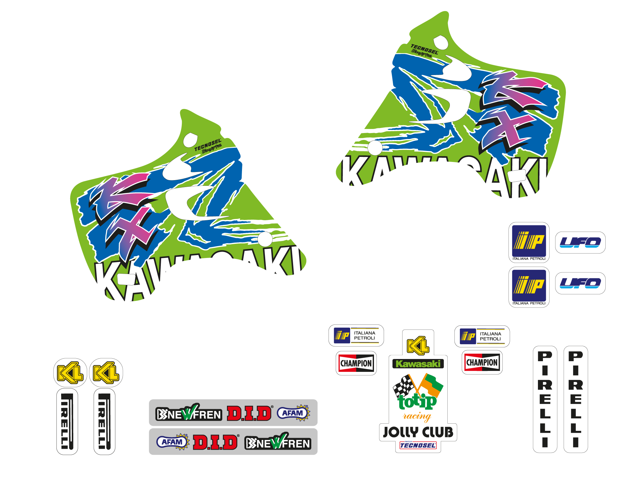 Each kit includes all the main parts: radiator shrouds, fenders, airboxes, number tables, swingarm.