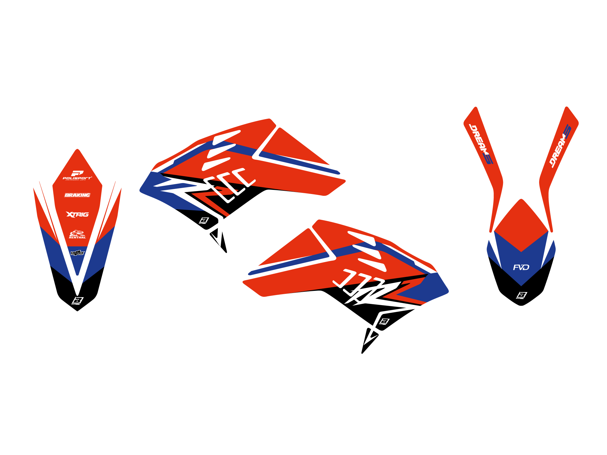 El kit de adhesivos incluye: par transmisores, guardabarros delantero y guardabarros trasero. Las piezas del kit no pueden venderse por separado.