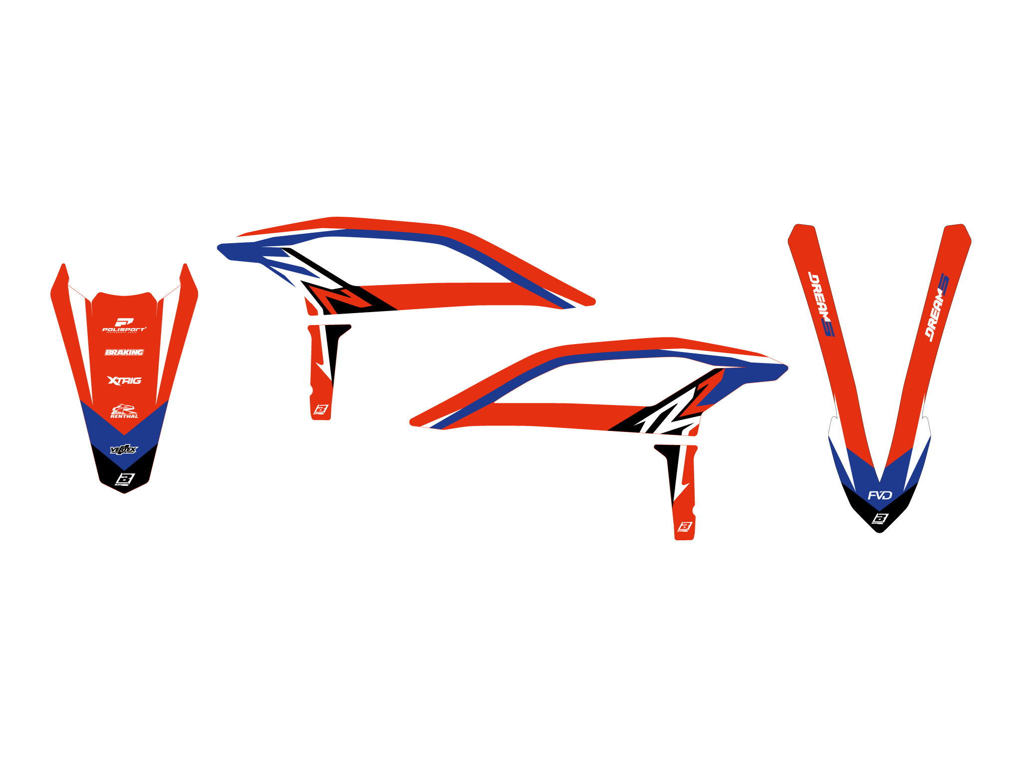 Cada kit incluye todas las partes principales: transportadores, guardabarros, airbox, tablas, basculante.