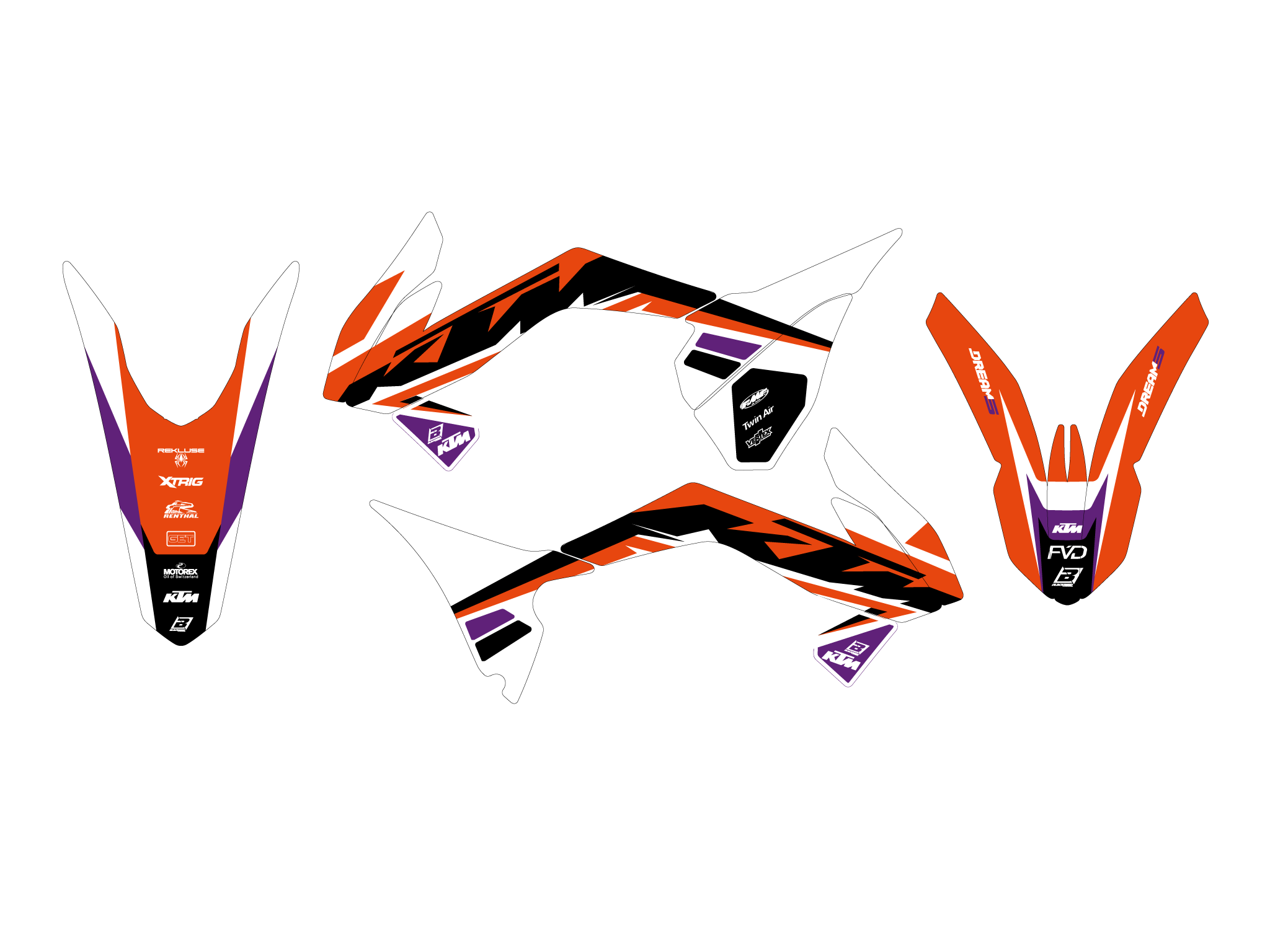 El kit de adhesivos incluye: par transmisores, guardabarros delantero, guardabarros trasero y par horquillas. Las piezas del kit no pueden venderse por separado.