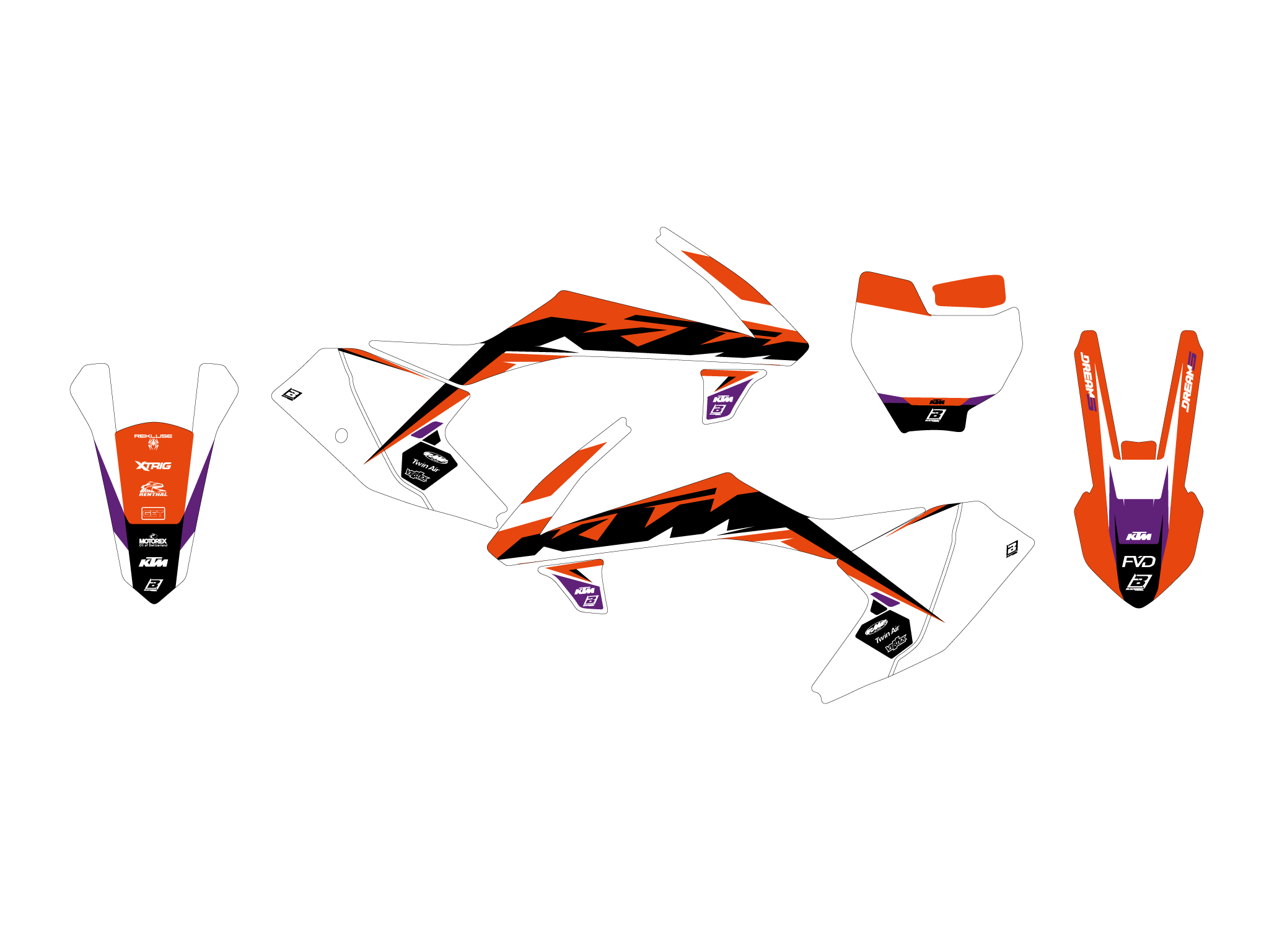 Las gráficas adhesivas para motocross, enduro, motard y trial se realizan con materiales muy eficaces y de calidad óptima. Se utiliza el material crystall con espesor 0,5mm combinado a un adhesivo muy fuerte estudiado específicamnete para la aplicación en el sector off-road. Aglutinante muy fuerte y resistente en el tiempo. Impresión serigráfica con tintas resistentes y brillantes. Durante la aplicación, es necesario calentar siempre el adhesivo con un secador haciendo una leve presión para obetener el resultado optimal. Para aplicar estos materiales no es necesario utilizar jabones o solventes, solo hay que limpiar bien la superficie con un producto seco o utilizar nuestro espray dedicado. Para las instrucciones de montaje ver el video en nuestra página web.