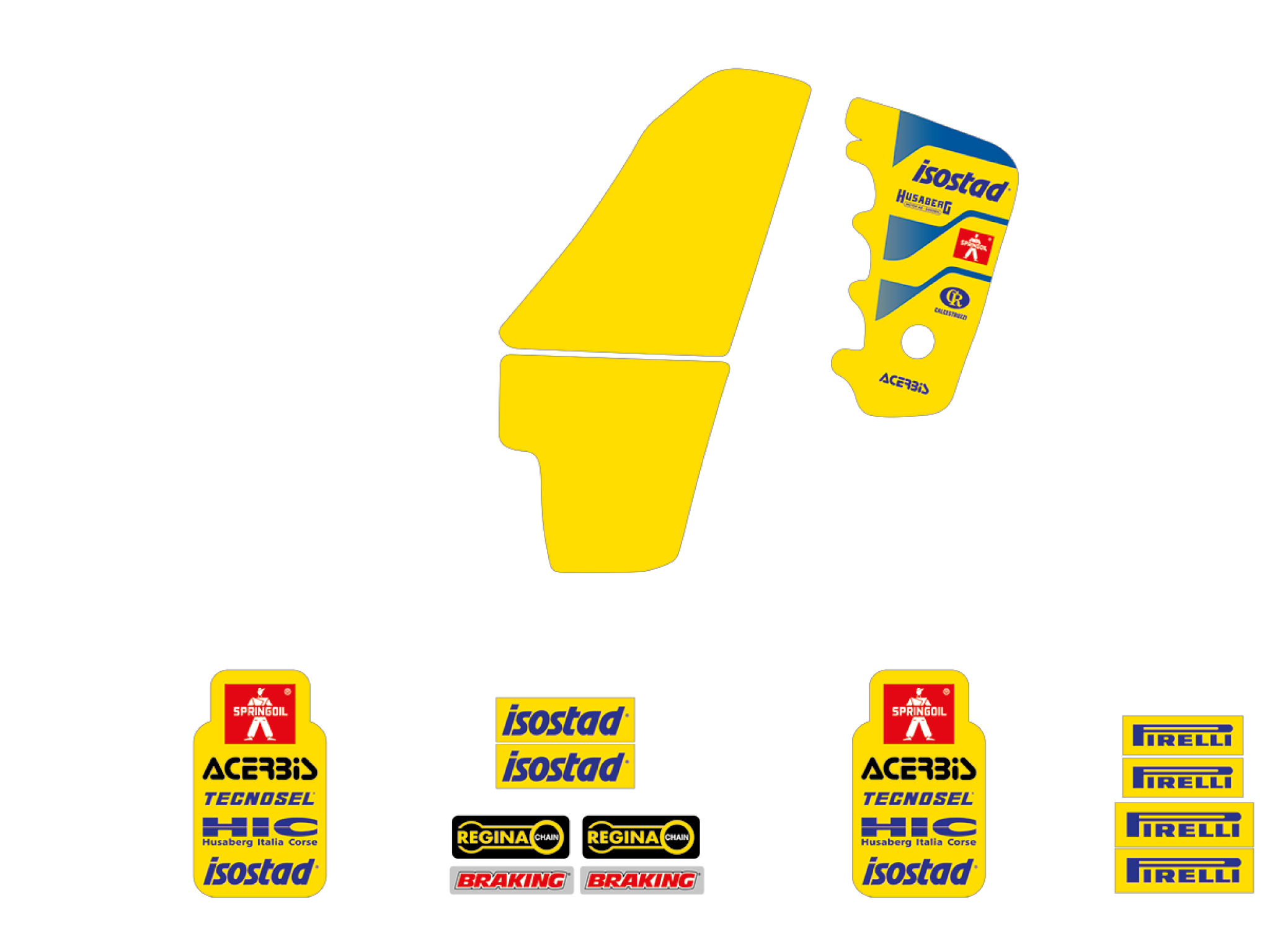 Cada kit incluye todas las partes principales: transportadores, guardabarros, airbox, tablas, basculante.