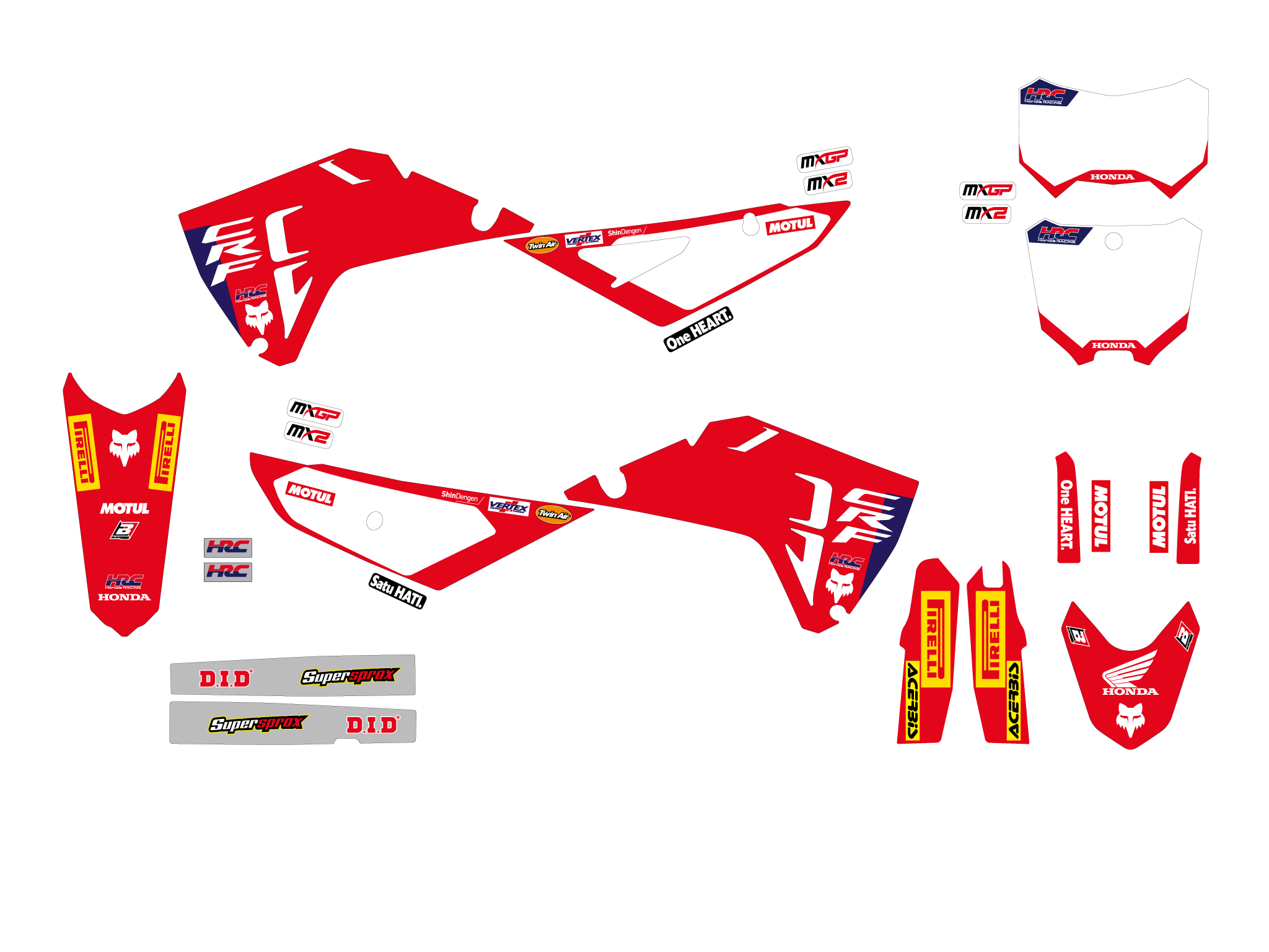 Les graphiques autocollants pour motocross, enduro, motard et trial sont réalisées dans des matériaux très performants et d'excellente qualité. Le Crystal utilisé a une épaisseur de 0,5 mm et il est uni à un tenace adhésif, spécialement étudié pour l'application dans le domaine off-road, ayant un pouvoir adhésif très fort et résistant dans le temps. L'impression est du type sérigraphique et fait appel à des encres résistantes et brillantes. Pour obtenir un résultat optimal, pendant l'application il est préférable de chauffer l'autocollant avec un sèche-cheveux tout en maintenant une légère pression. Pour l'application de ces matériaux on n'utilise pas de savons ou de solvants : il faut juste bien nettoyer la surface avec un produit sec ou utiliser notre spray approprié. Pour la notice de montage, veuillez consulter la vidéo sur notre site.