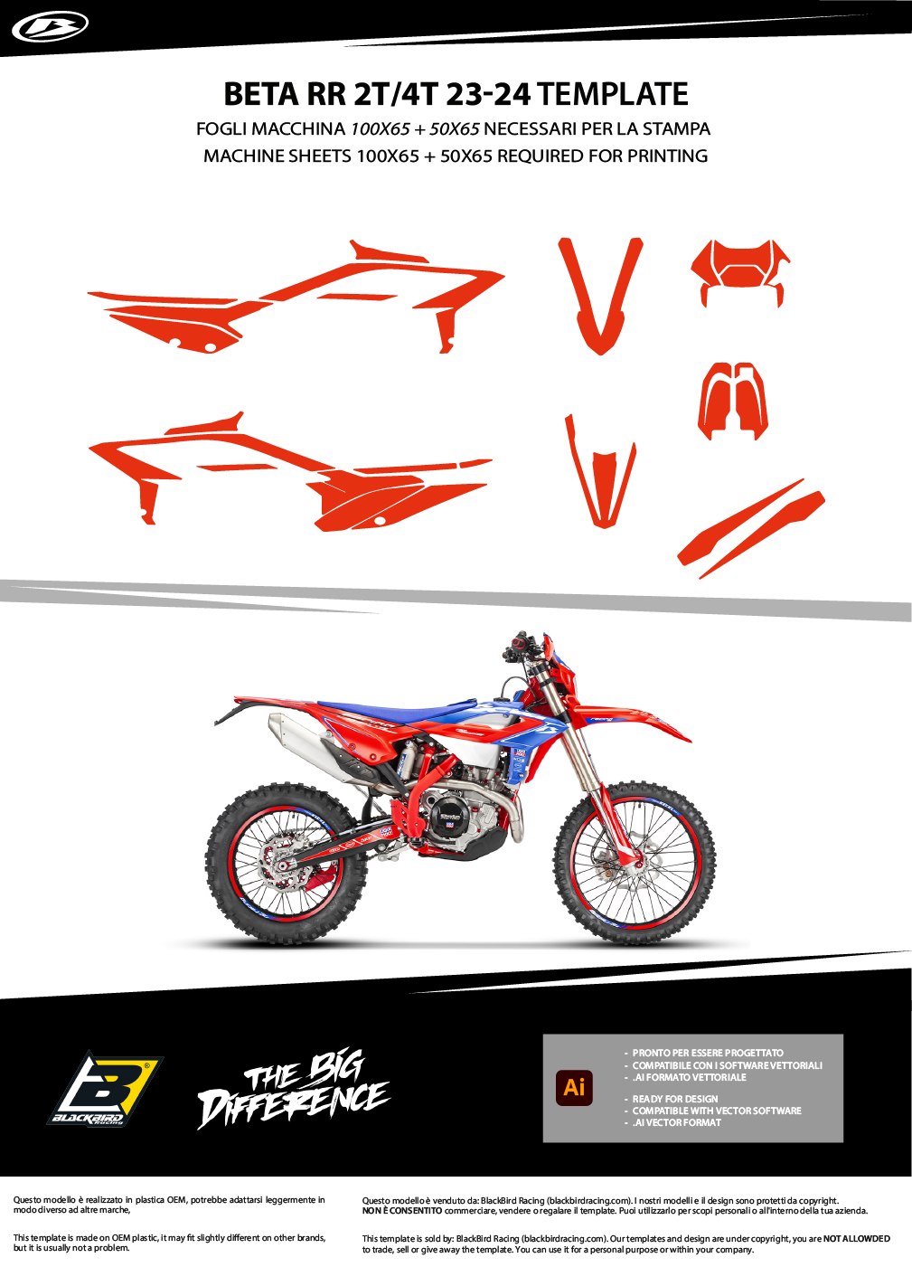 Con i nostri template vettoriali puoi creare la grafica che desideri per la tua moto. Modelli in formato vettoriale in scala 1:1 per schizzi e creazioni grafiche. I file sono in formato PDF vettoriale, compatibili con i principali software di grafica vettoriale.
