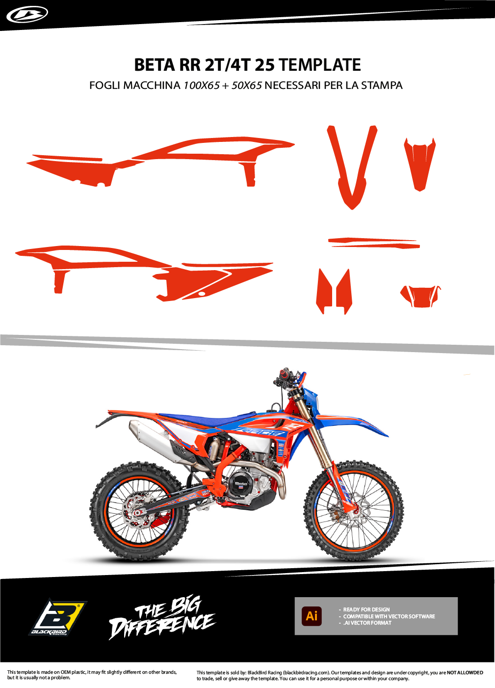 Ogni kit include tutte le parti principali: convogliatori, parafanghi, airbox, tabelle, forcellone.