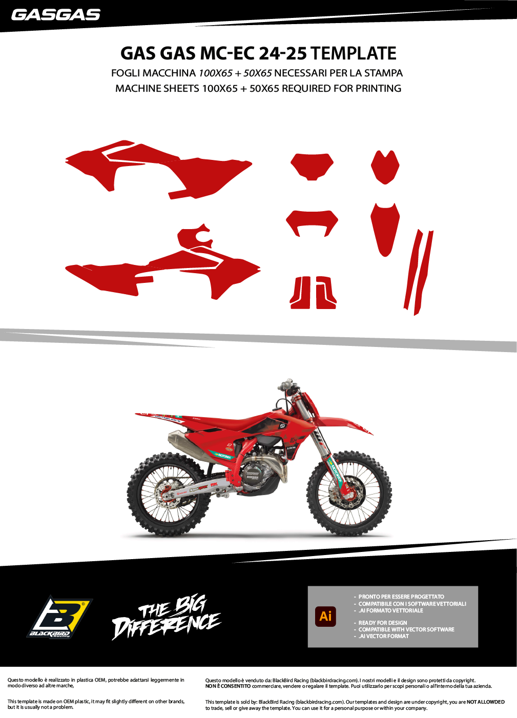Ogni kit include tutte le parti principali: convogliatori, parafanghi, airbox, tabelle, forcellone.