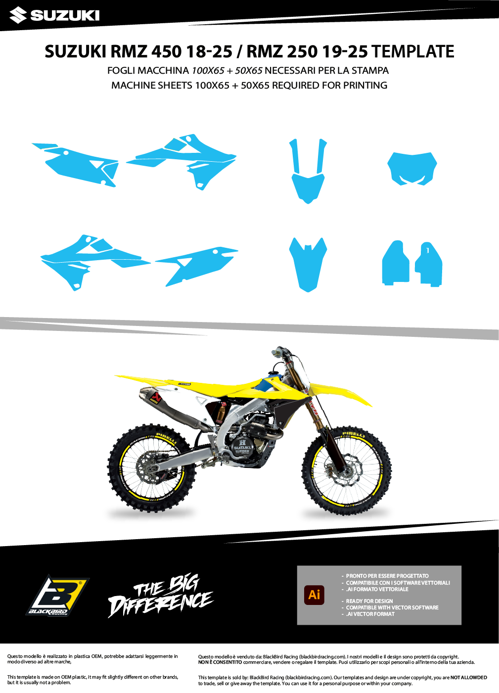 Ogni kit include tutte le parti principali: convogliatori, parafanghi, airbox, tabelle, forcellone.