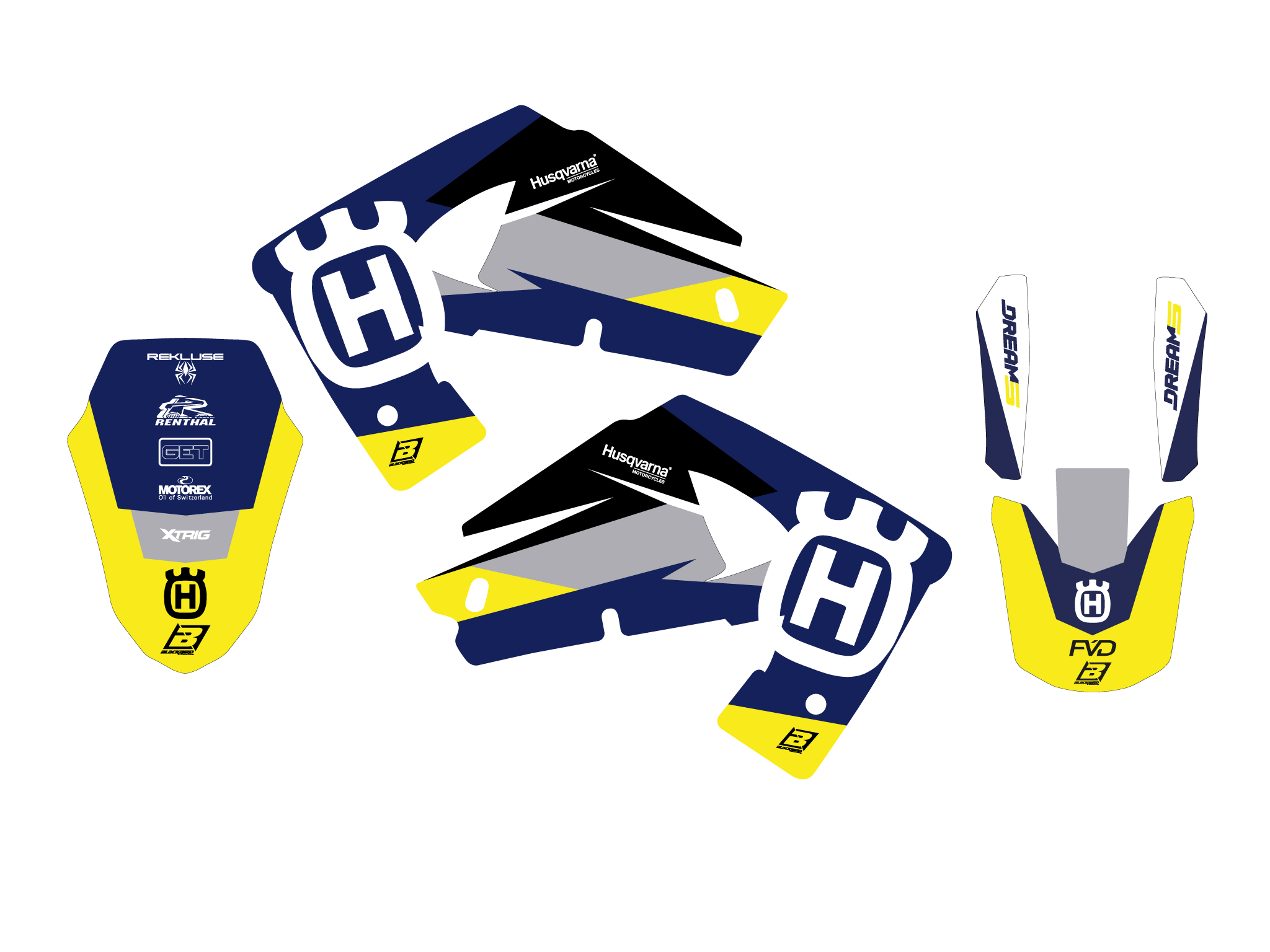 Ogni kit include tutte le parti principali: convogliatori, parafanghi, airbox, tabelle, forcellone.