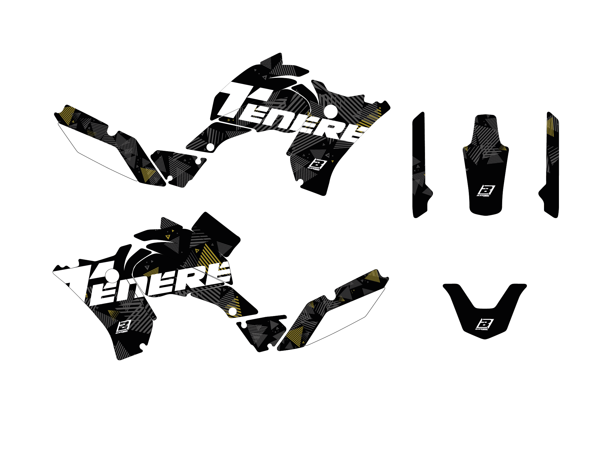 Ogni kit include tutte le parti principali: convogliatori, parafanghi, airbox, tabelle, forcellone.