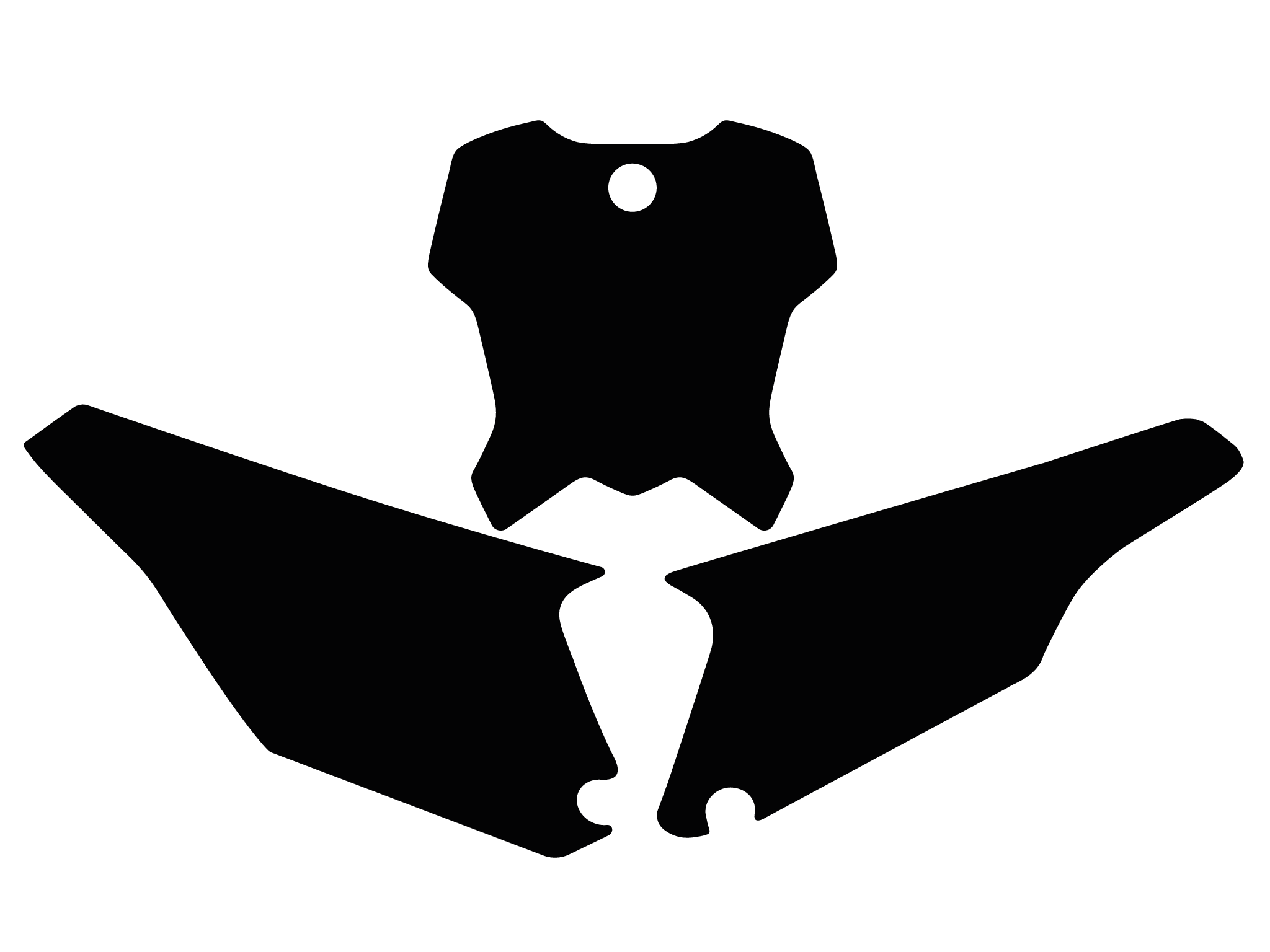 Le grafiche adesive per motocross, enduro, motard, trial sono realizzate con materiali molto performanti e di ottima qualità. Il crystall utilizzato è spesso 0,5 mm, mentre l'adesivo è stato appositamente studiato per l'applicazione nel settore off-road ed ha un collante molto forte e resistente nel tempo. La stampa è serigrafica ed utilizza inchiostri resistenti e brillanti. Per un risultato ottimale durante l'applicazione bisogna sempre scaldare l'adesivo con un fon facendo una leggera pressione su di esso. Su questo tipo di materiali non vanno usati saponi o solventi: bisogna solamente pulire bene la superficie con un prodotto secco. Per le istruzioni di montaggio consultare il video sulla homepage del sito.