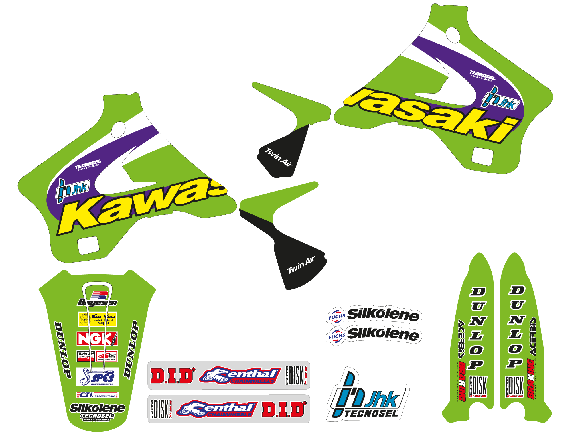 Ogni kit include tutte le parti principali: convogliatori, parafanghi, airbox, tabelle, forcellone.